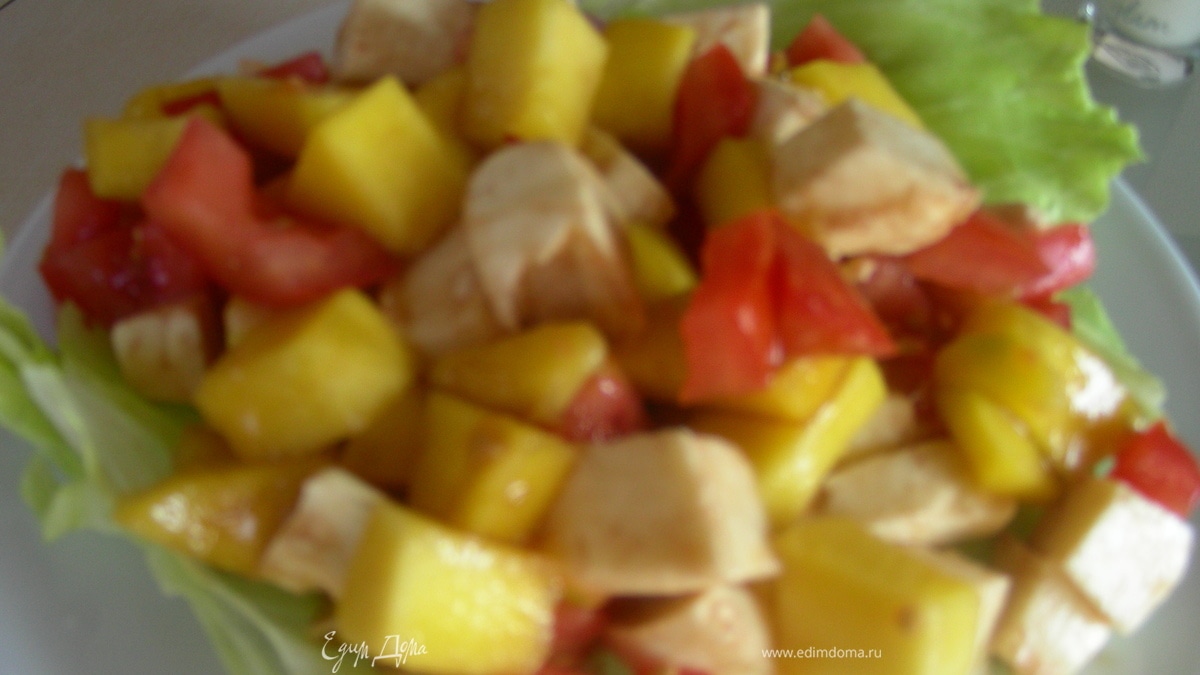 Сегодня на обед готовила вот такой салатик, очень понравилось сочетание ингредиентов, поэтому хочу поделиться с Вами)) он получается очень легкий, но в то же время сытный за счет моцареллы, немного сладковатый благодаря манго, однако это не так сильно чувствуется из-за заправки)) за рецептик спасибо большое пользователю Katinka) Попробуйте))