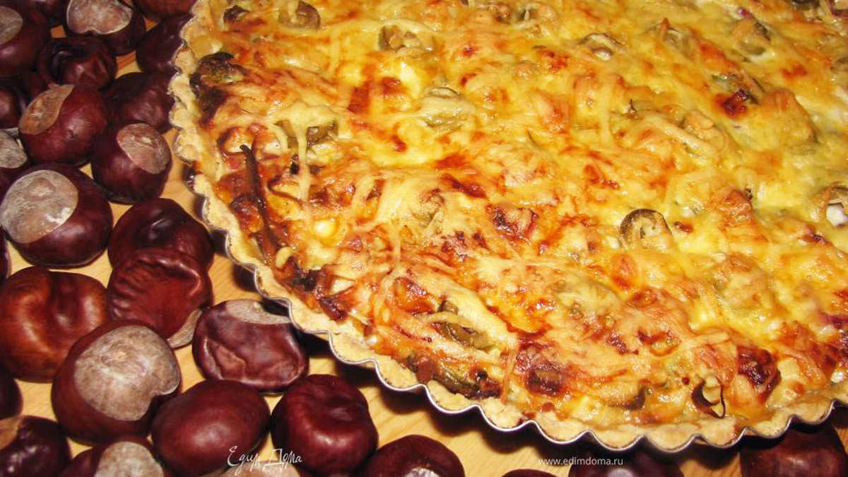 Тарт "3 сыра" с пореем, балыком и оливками