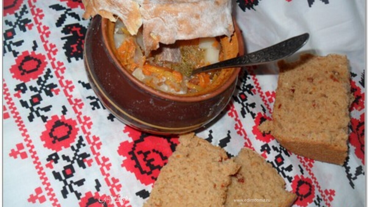 Из теста сформировать лепешки и накрыть ими горшочки. - Шаг 5Отправляем в духовку на 60 минут при температуре 180 градусов. Приятного аппетита!