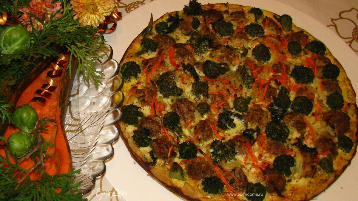 Достаем пирог из духовки, на запах тут же сбегаются домочадцы :)), режем его и наслаждаемся вкусным сочетанием нежных мясных шариков, хрустящей брокколи и легкой сливочной заливочки!