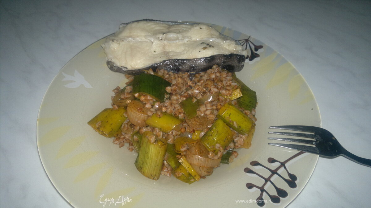 Гречотто луковое (вариант номер 3) + отварной стейк из зубатки