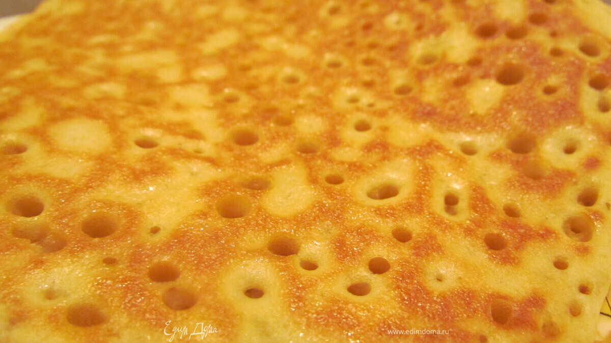 А я опять с блинчиками :) Я в них влюбилась :) Они такие пышные и такие в дырочку, что просто не возможно не влюбиться. Думаю, они идеально подойдут к мачанке, но и с любой другой начинкой-намазкой они просто чудесные. Смотрите сами....