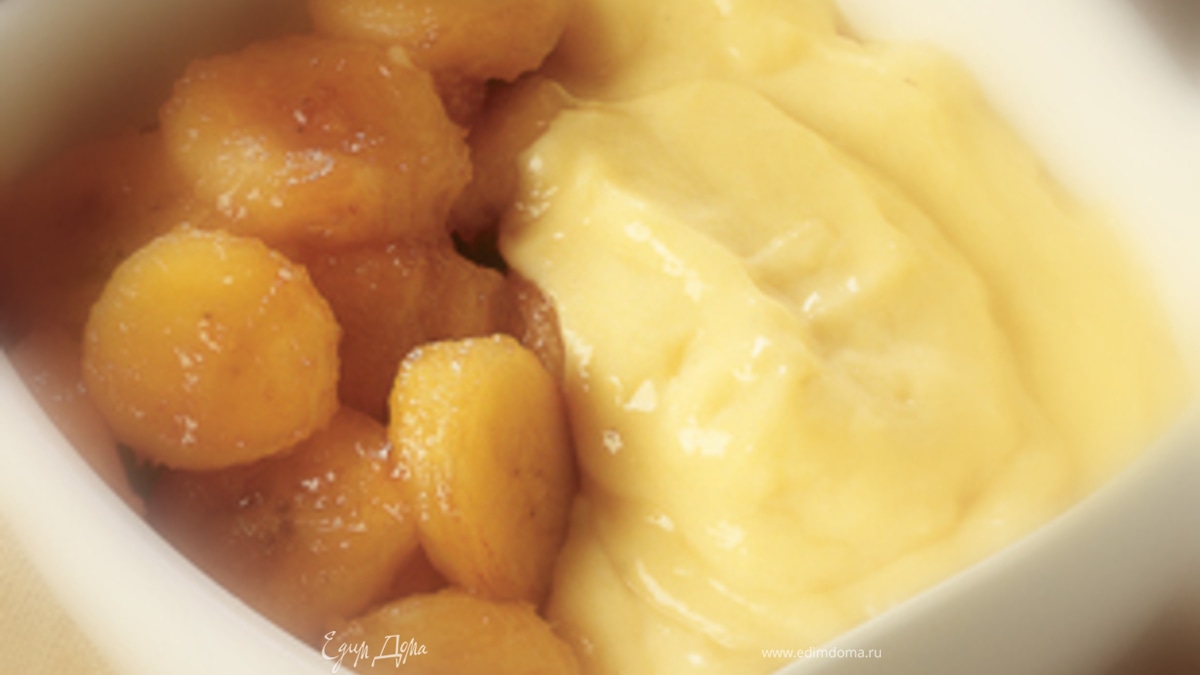 - Шаг 1Довести молоко и ваниль-бобы до кипения снять с огня. У бобов вынуть ножом семена добавить в молоко и размешать, бобы выбросить.(но не забываем что их можно положить в сахар, и он станет ванильным) Во второй большой кастрюле, взбейте венчиком вместе 1/3 стакана сахара, яичного желтка, крахмала и щепотку соли; медленно взбивая венчиком добавьте 1/4 стакана теплого молока. Держа смесь на среднем огне. Взбивая постоянно, очень медленно, добавить оставшееся молоко. Продолжайте взбивать постоянно,пока пудинг загустеет до консистенции майонеза, не давайте кипеть пудингу. Пудинг снять с огня и добавить 1 столовую ложку сливочного масла. Накрыть пудинг полиэтиленовой пленкой для предотвращения корки и охладить, около 2 часов. В сковороде, растопить 1/2 ст.л. сливочного масла и оставшиеся 2 столовые ложки сахара на среднем огне. Добавить банан и жарить до золотистого цвета, около 3 минут. Влить ром и выпарить 1 минуту. Охладите. Подавать с пудингом!