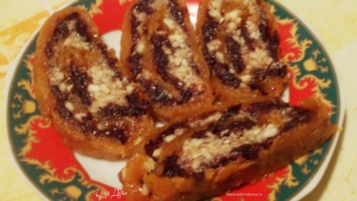 раскатать на столе фольгу или пищевую плёнку и выкладываем слоями курагу ( потолще слой должен быть, я слишком тонко размазала и меня кое-где порвался ) - Шаг 3