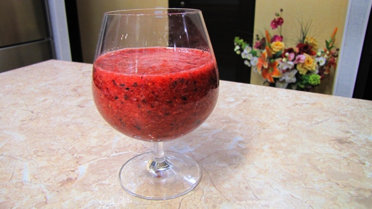 Итак - Клубника с базиликом Очень вкусное блюдо, которое представляет великолепный рецепт. Я кладу в него лед, но для детей можно обойтись без него. - Шаг 2