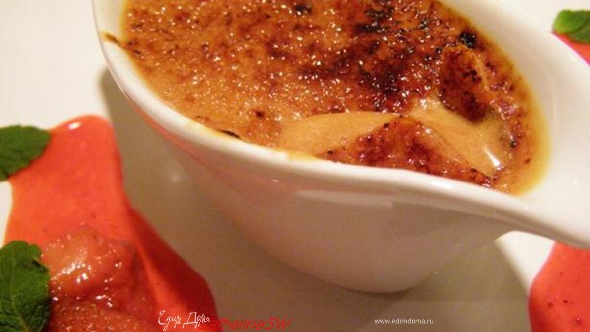 Крем-брюле с малиново-клубничным соусом