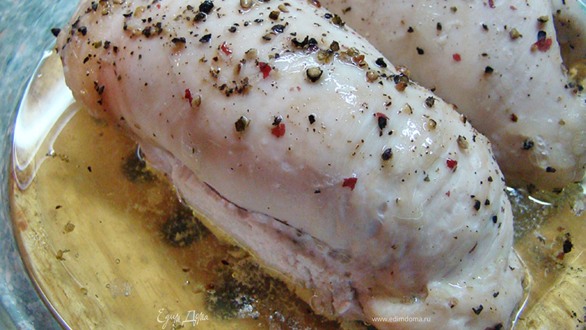 Филе солим по вкусу. И выкладываем сверху нашу начинку. Аккуратно заворачиваем и кладем в форму для запекания, смазанную маслом, швом вниз. Сверху я посыпала свежемолотым перцем.