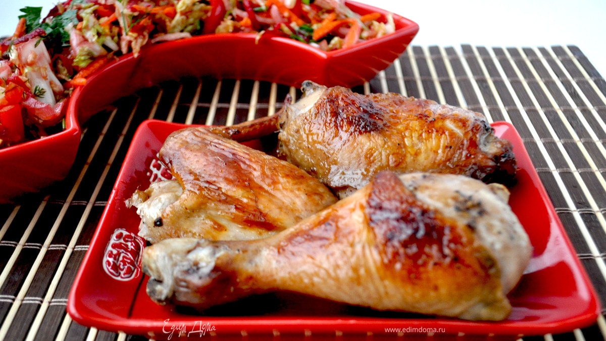 Запечённая курица+острый овощной салат