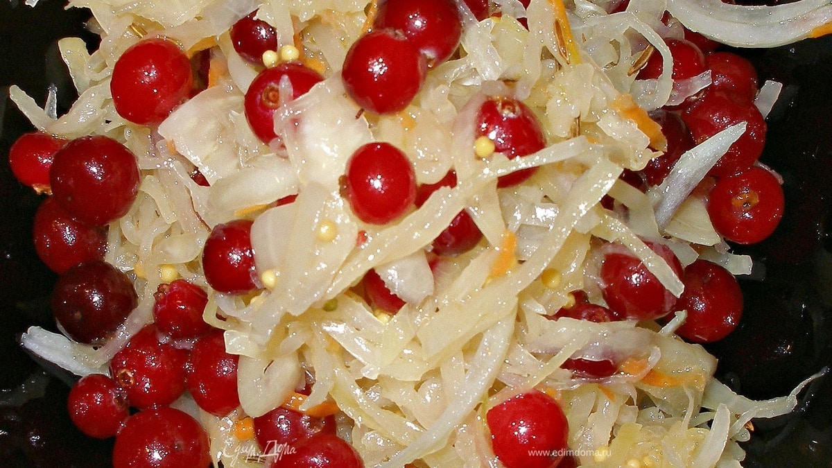 Для тех, кто придерживается поста, это салат - настоящий кладезь витаминов, ведь к и без того полезной квашеной капусте добавляется мегаполезная клюква! Кстати, клюкву можно брать как свежую, так и замороженную.
