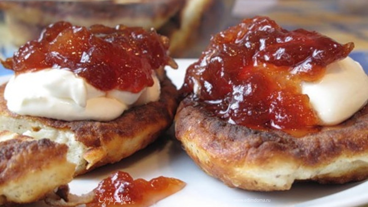 Обычно в сырники добавляют курагу или изюм, а у меня в этот раз не было никаких сухофруктов. Тогда я натерла в творог горький шоколад, и получилась такая вкуснятина! И необыкновенный аромат! Варенье мамино: яблоки, слива и лимонная корочка.