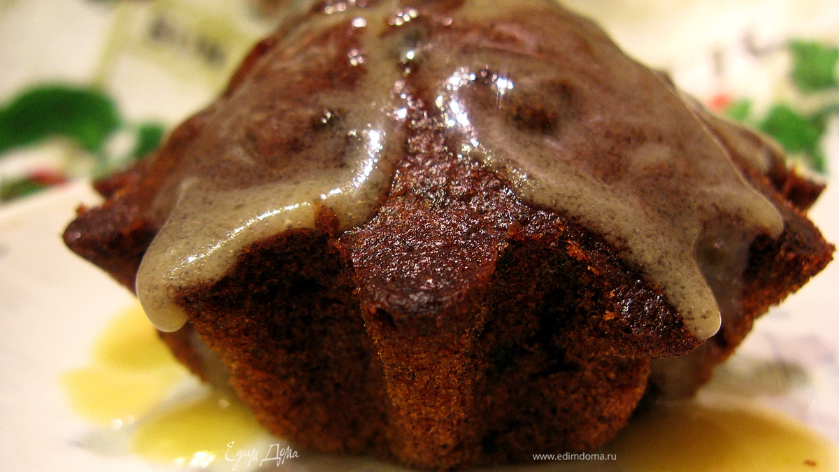 Приготовим карамель: сливки нагревать, помешивая, с коричневым сахаром и 115 г сливочного масла, пока сахар не раствориться и масса не загустеет. Кексы вынуть из формочек. Каждый полить карамелью. Очень вкусно! Наслаждаемся!!!