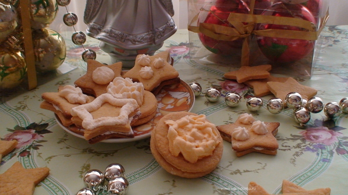Рецепт очень простой. Все замешиваем и роскатав в пласт толщиной около 1см вырезаем звездочки. Потом можно украсить любым кремом. Вот все простенько и оригинально. Этим простым печеньем будем встречать гостей, и детишек) С наступающими Вас праздниками!!!