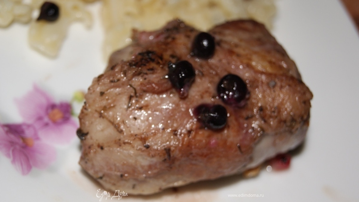 За 5 минут до готовности добавить смородину, стараясь ее не повредить, т.к. мясо может приобрести синий цвет.