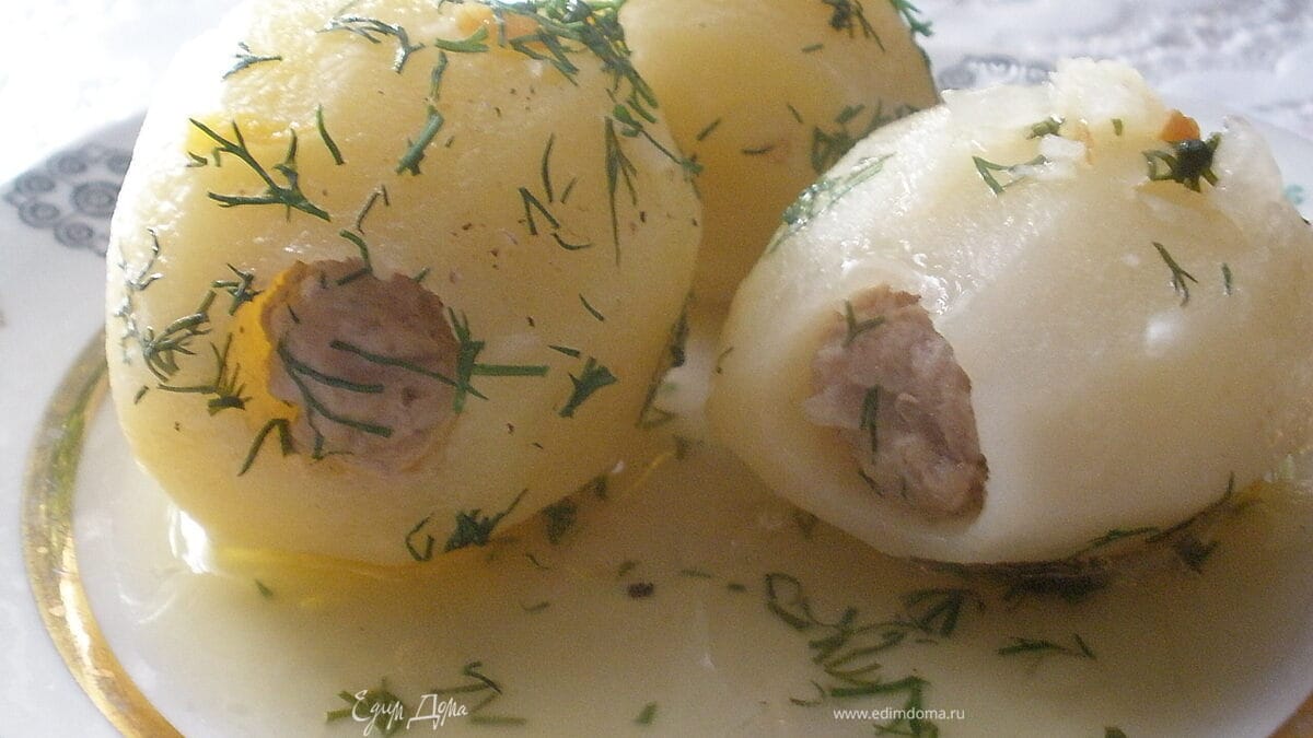 3есть еще один вариант приготовления - не варить, а положить начиненную картошку на смазанный маслом противень и в духовку. Картошку можно смазать майонезом
