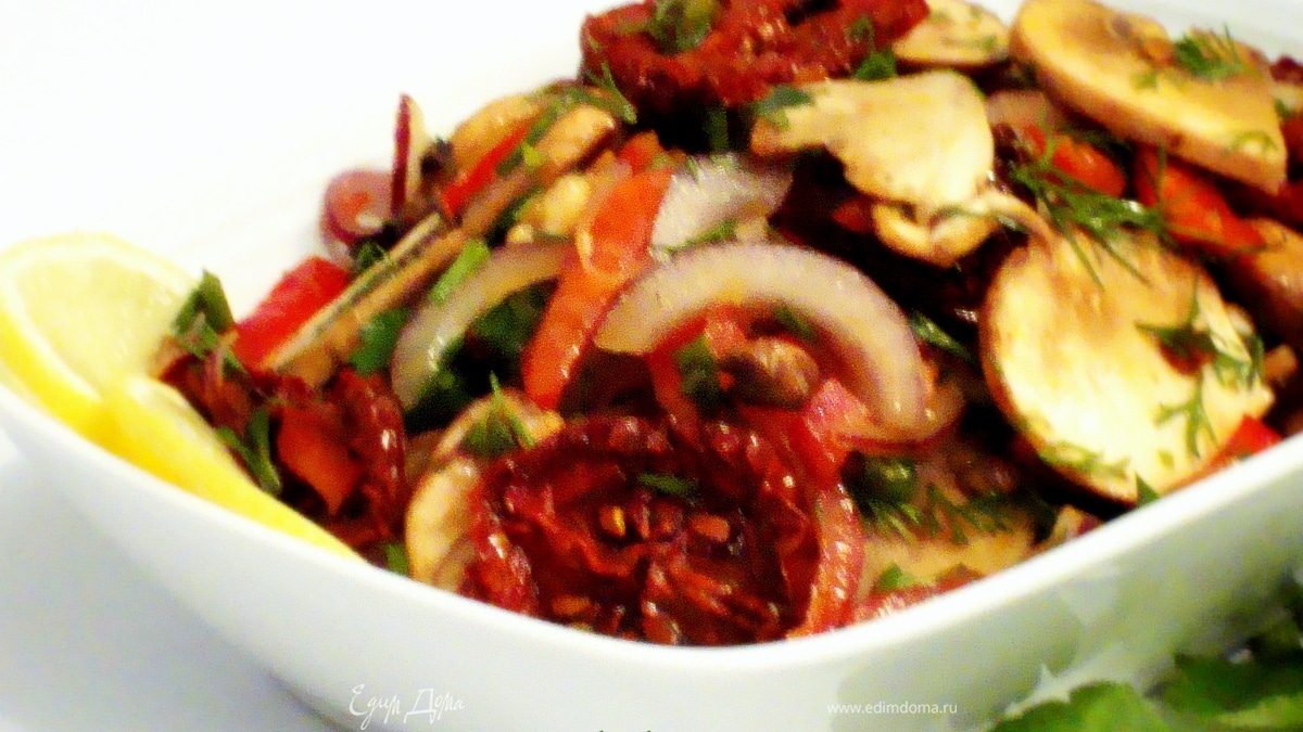 Салат из шампиньонов с вялеными помидорами
