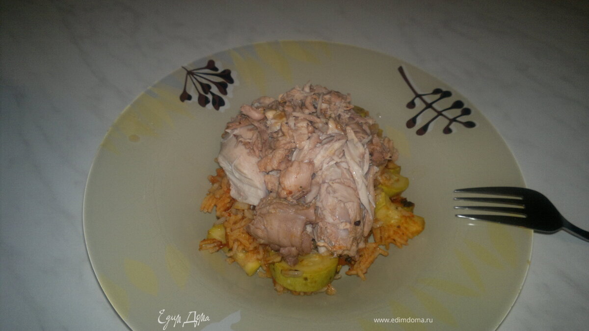 Упрощенный ризотто в томате с кабачком, чесноком и имбирем + отварной кролик.