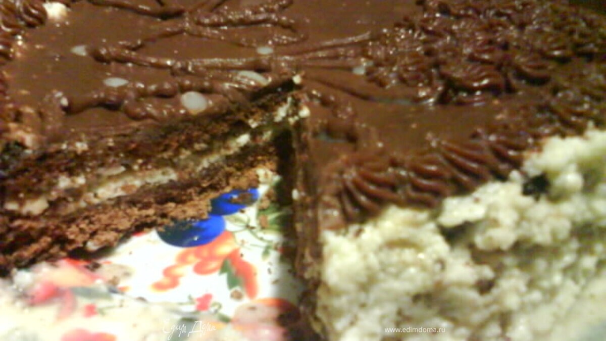 - Шаг 1белки (постоявшие сутки) взбить с лимонным соком,я постепенно добавила 90 гр сахара. отдельно смешала 90 гр сахара, муку и измельченный арахис, ванильный сахар. когда белки взбились до гладких, стоячих пиков осторожно ввела сухую смесь.За счет арахиса в шоколаде, она у меня получилась шоколадного цвета. Разделила на две формы и выпекала 2 часа. У меня духовка очень сильно греет температура была 140градусов 10 минут, затем 30 минут при 100 градусах, и 1час 20мин при 60градусах. В оригинале 2 часа при 150. Оставить на сутки в формах. На следующий день аккуратно вынуть (прилипает к форме) крем шарлот: молоко закипятить с сахаром и ванилью, добавить взбитые желтки и довести до кипения. Когда остынет по ложке добавлять в взбитое мало, перемазывать середину и бока(посыпать бока орехами). Шоколадный крем: Все составные взбить, только верх торта.