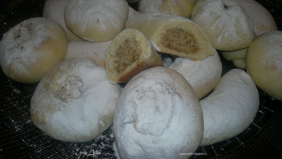 готовим их в духовке 10_15минут,верхняя часть не должна румянется,как нижняя часть подрумянилась,вынимаем. ГОТОВО!!!После того как вынимаем из духовки подсыпаем сахарной пудрой. Вкусняшка!!! Еле успела сфоткать,уплетали на ходу))) Приятного всем апетита!!!!