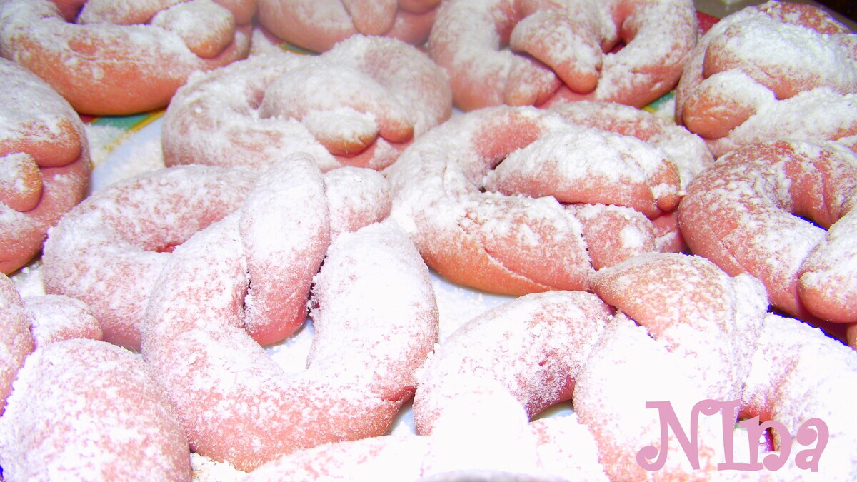 Очень вкусные, нежные, ванильные калачики, так и тают во рту:)) Прекрасно украсят праздничный стол, особенно вкусные с горячим молочком, чаем или кофе:) Угощайтесь!