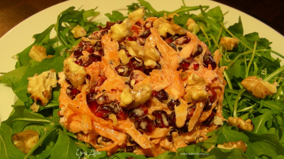 Легкий салат из моркови и граната с грецкими орехами