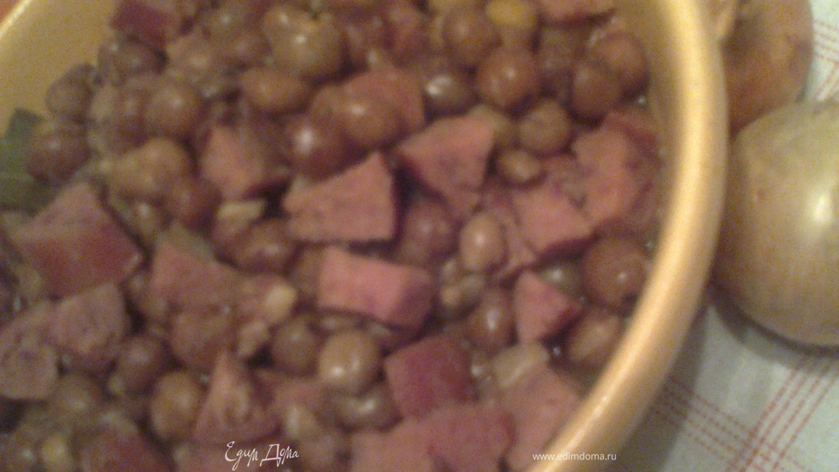 После выключения оставить под крышкой минут на 10 (если была лишняя жидкость-она впитается) Подают это блюдо горячим в общем блюде,а в кафе предложат к нему стаканчик... КЕФИРА! Вот такие пристрастия были у латышских крестьян и передались по наследству нашему поколению!Попробуйте вначале меньшую порцию, а потом, может, войдёте во вкус))) - Шаг 8Забыла написать:по вкусу очень напоминает бурую чечевицу, но в разы дешевле (потому что растёт здесь,а чечевица привозная) и польза та же!Сейчас посмотрела ролик в ЯРМАРКЕ про чечевичный суп-смысл тот же! Так что у кого нет под рукой чечевицы,а серый горох смотрит на Вас серым глазом-смело заменяйте! Приятного аппетита!