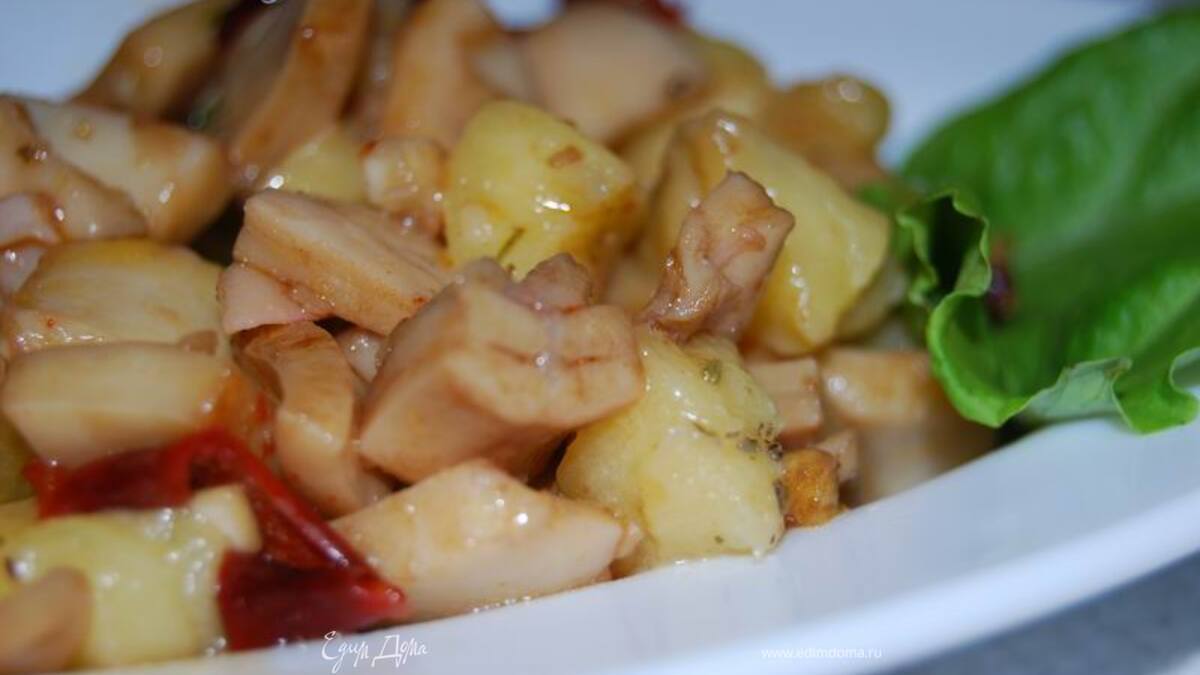 Яблоки очистить от кожуры,нарезать крупным кубиком и обжарить в сливочном масле до средней мягкости,добавив немного прованской соли и сахара. - Шаг 10