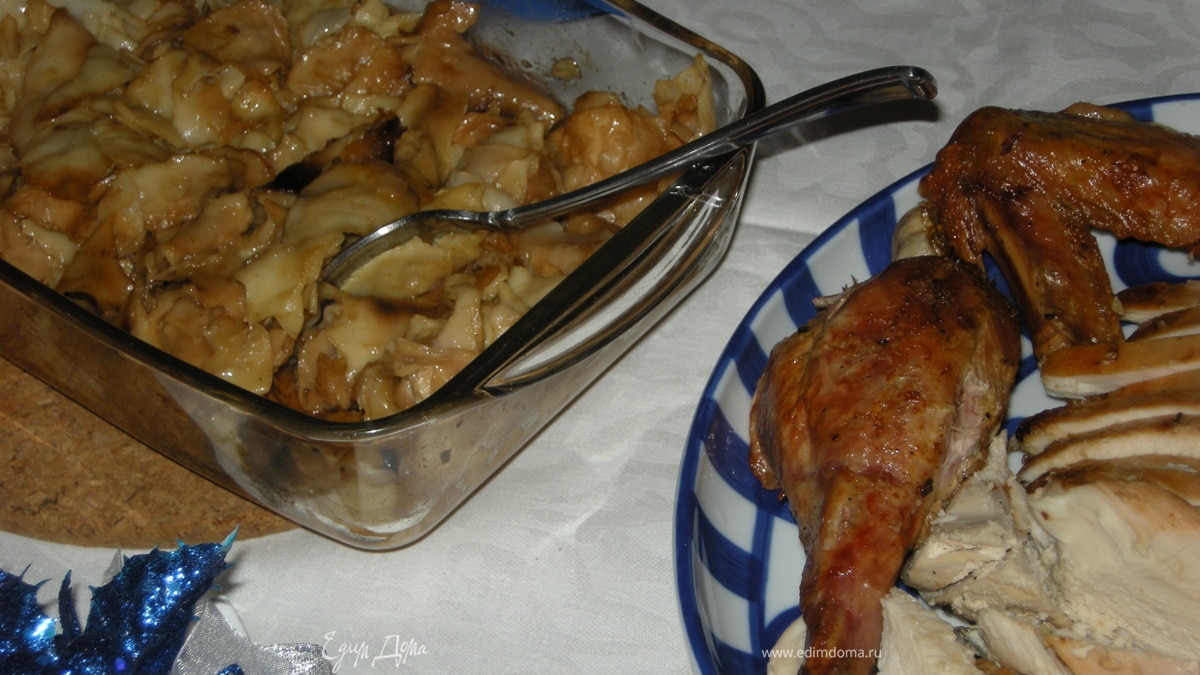 а у меня еще вопрос - ты индейку вытаскиваешь получается из духовки и сразу ставишь пасту замоченную в соке в духовку??