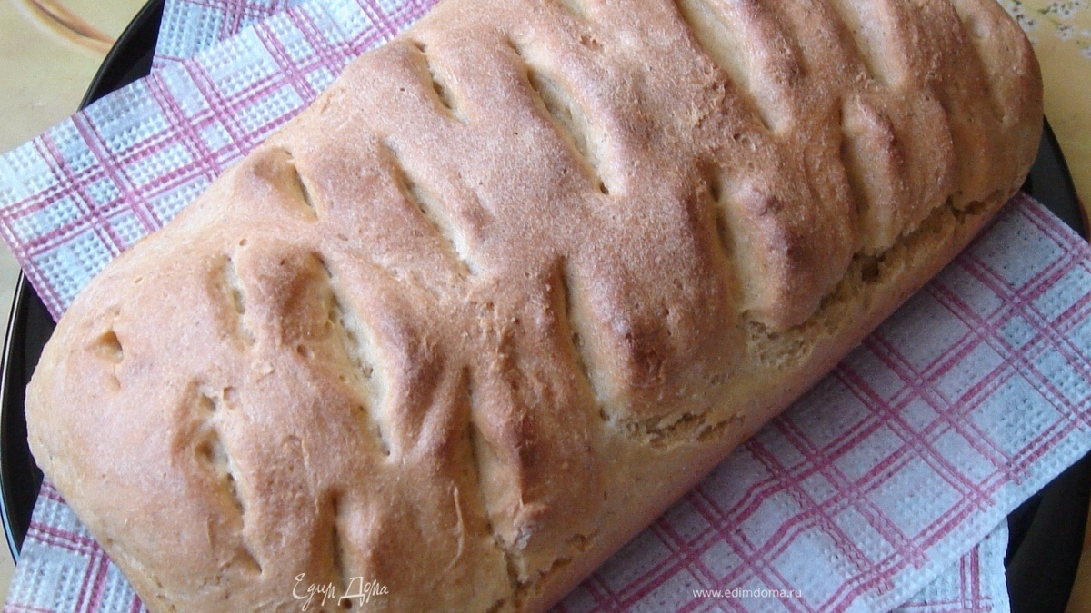 Тесто обмять и выложить в форму, ничем не смазанную. Духовка должна быть разогрета до 200°C. В середине процесса выпекания достать хлеб и смазать его кисточкой, смоченной холодной водой.