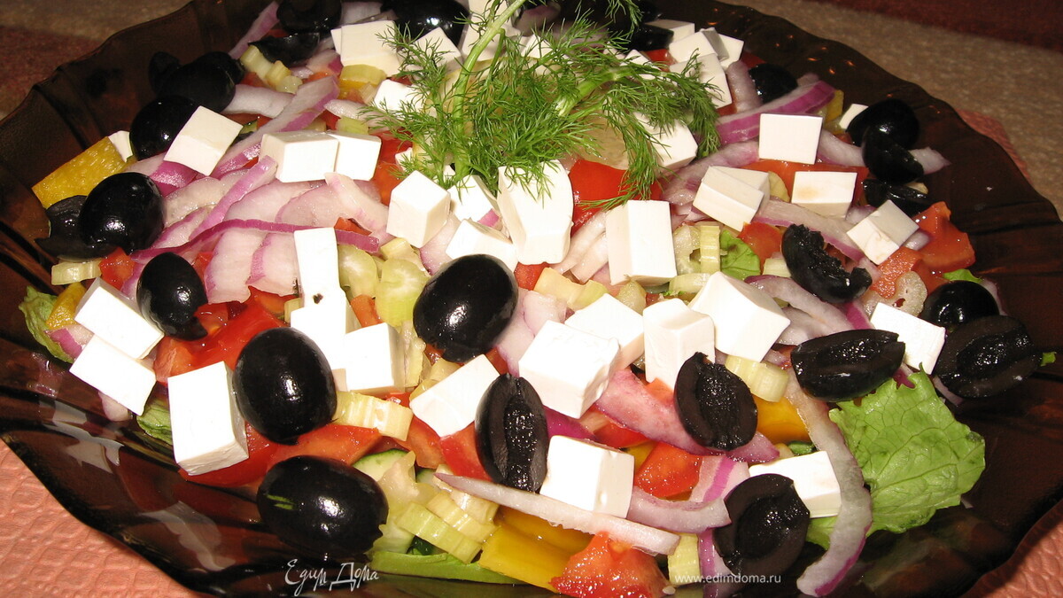 Существует огромное множество рецептов греческого салата, вот и я решила поделиться моим "фирменным греческим салатом".