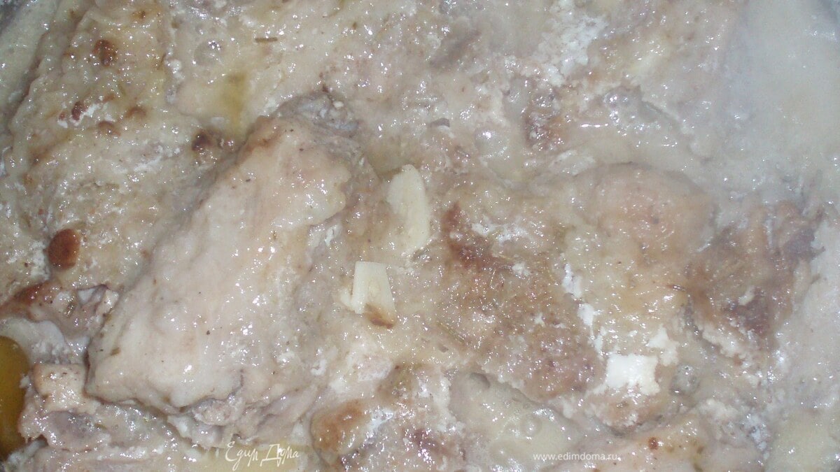 - Шаг 1Тушку разделать на порции, примерно по 200 г в каждой, мелко разделывать не советую, кролик должен быть сочным, замочить минимум часа на 2 в уксусе (я вымачивала ночь), обсушить кусочки (выложить на вафельное полотенце), нашпиговать чесноком, я делала маленькие разрезики и засовывала туда кусочки чеснока, натереть смесью розмарина, соли и перца, дать постоять часа 2. Следующий этап это обжарка кролика на сливочном масле, обваливаем в муке готовые и просоленные кусочки, жарим, после улаживаем в казан заливаем сметаной и тушим 2-3 часа на медленном огне. Приятного аппетита, дорогие мои!!!