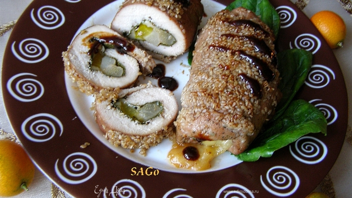 Куриные рулетики с грушей и кунжутом в пряном соусе "Восточный экспресс"