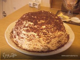 •На второй ярус выкладываем крем с Москорпоне, поверх крема кидаем шоколадную крошку. Накрываем 3 частью бисквита. - Шаг 5