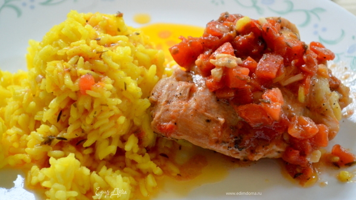 Жарить на на сред.огне (не на чугунной сковороде,из-за кислотности уксуса и помидор). Жарить каждую сторону 5мин. Переложить курицу со сковороды на тарелку. - Шаг 2