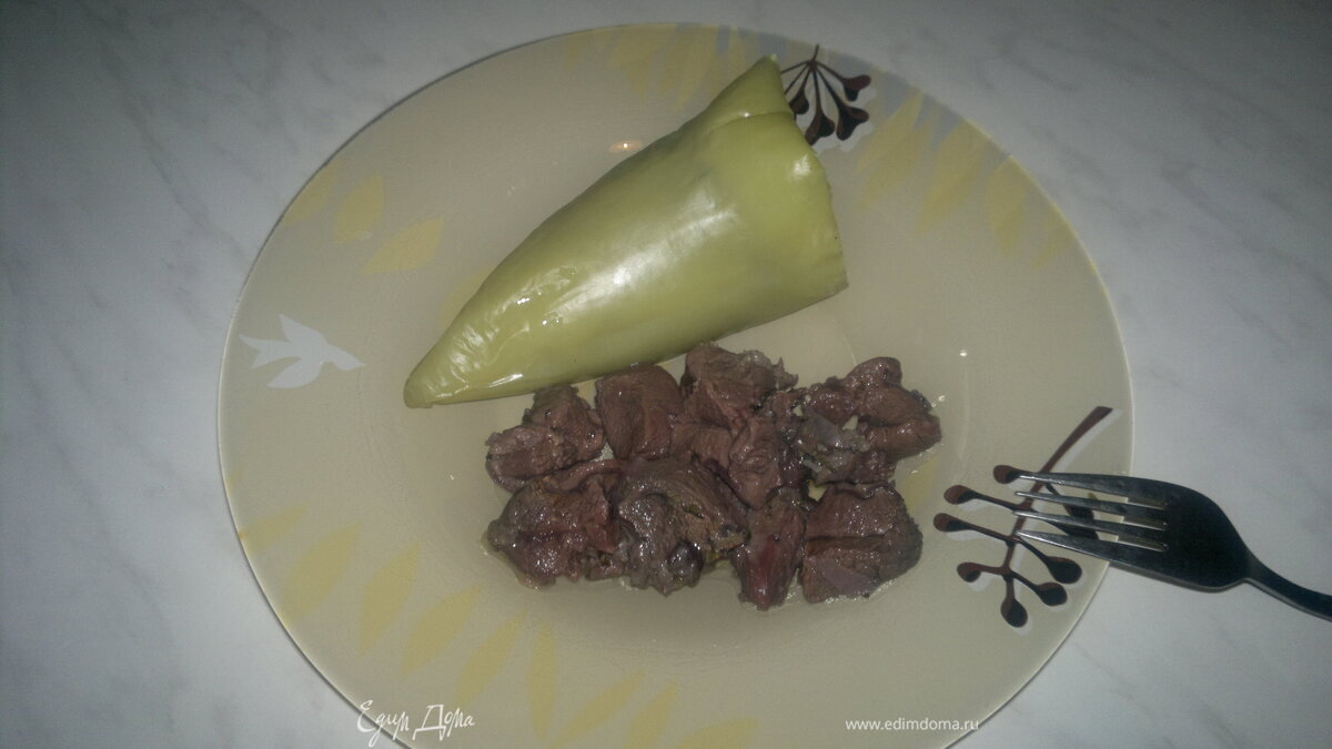 Перец фаршированый гречкой, луком и грибами и баранина с ягодами черной смородины.