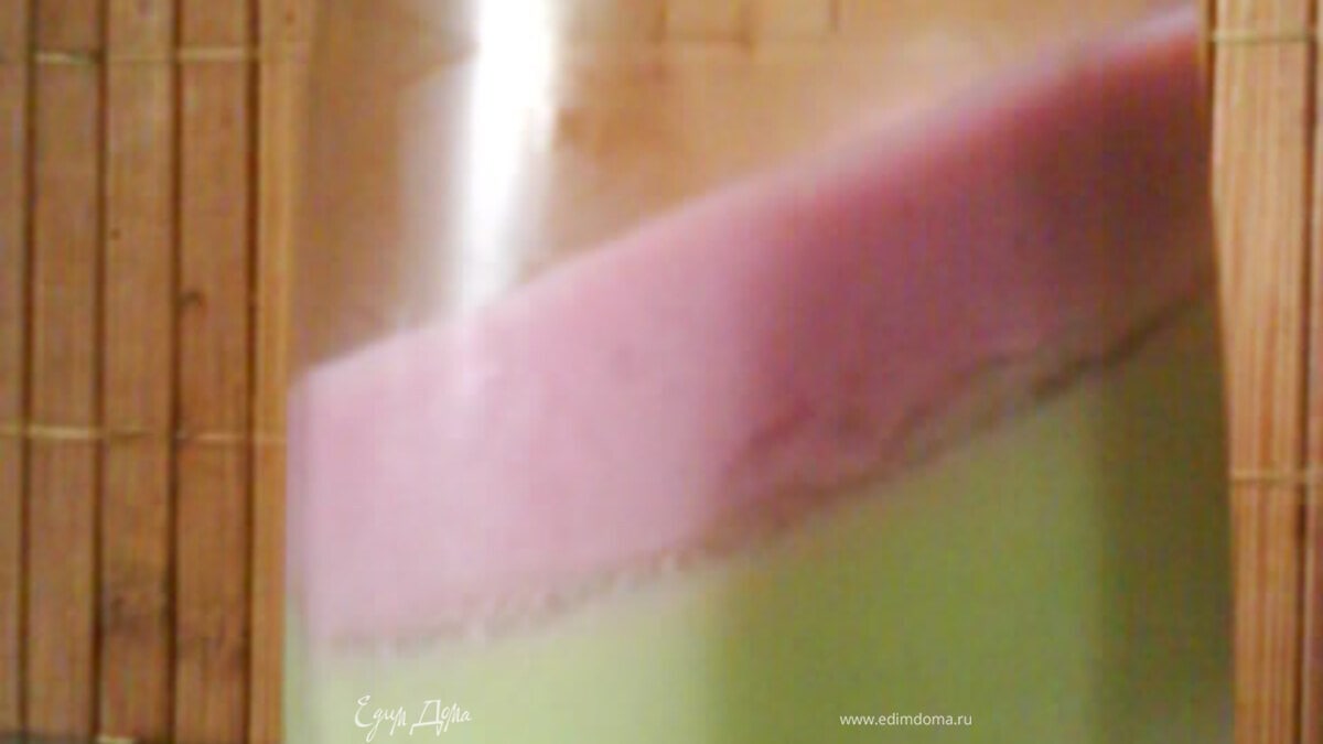 - Шаг 1взбить желтки с сахаром, влить молоко. на маленьком огне довести до густоты постоянно помешивая. Желать залить водой, распустить на паровой бане, влить в молоко, взбить.желе залить 1ст воды и довести до кипения. Черную смородину залить 1 ст воды и проварить, когда остынет перетереть через сито и прогреть с распущенным желатином (15гр). В остывшую молочную смесь ввести сбитые сливки, перемещать, разделить на 2 части. В одну добавить желе из киви, во вторую смородиновое.Бокалы поставить в решетку под наклоном, налить зеленую смесь, дать застыть и налить красную смесь. Подавать когда застынет, можно сделать просто белую прослойку