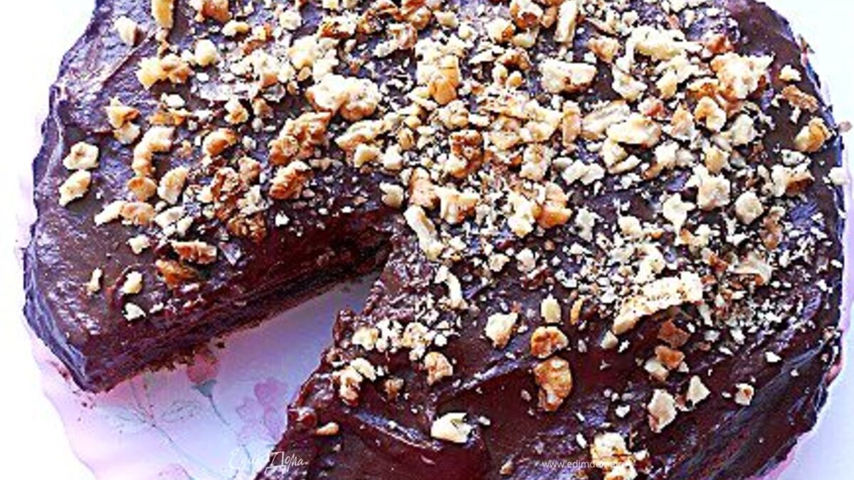 Корж разрезать на две части, промазать щедро кремом, внутри и снаружи, украсить по желанию. Я украшала орешками, хотя в принципе очень красиво смотрится и без них. Торт оставить при комнатной температуре на 2-3 часа, потом убрать в холод. Приятных вам Святок и вкусного тортопоедания!:))