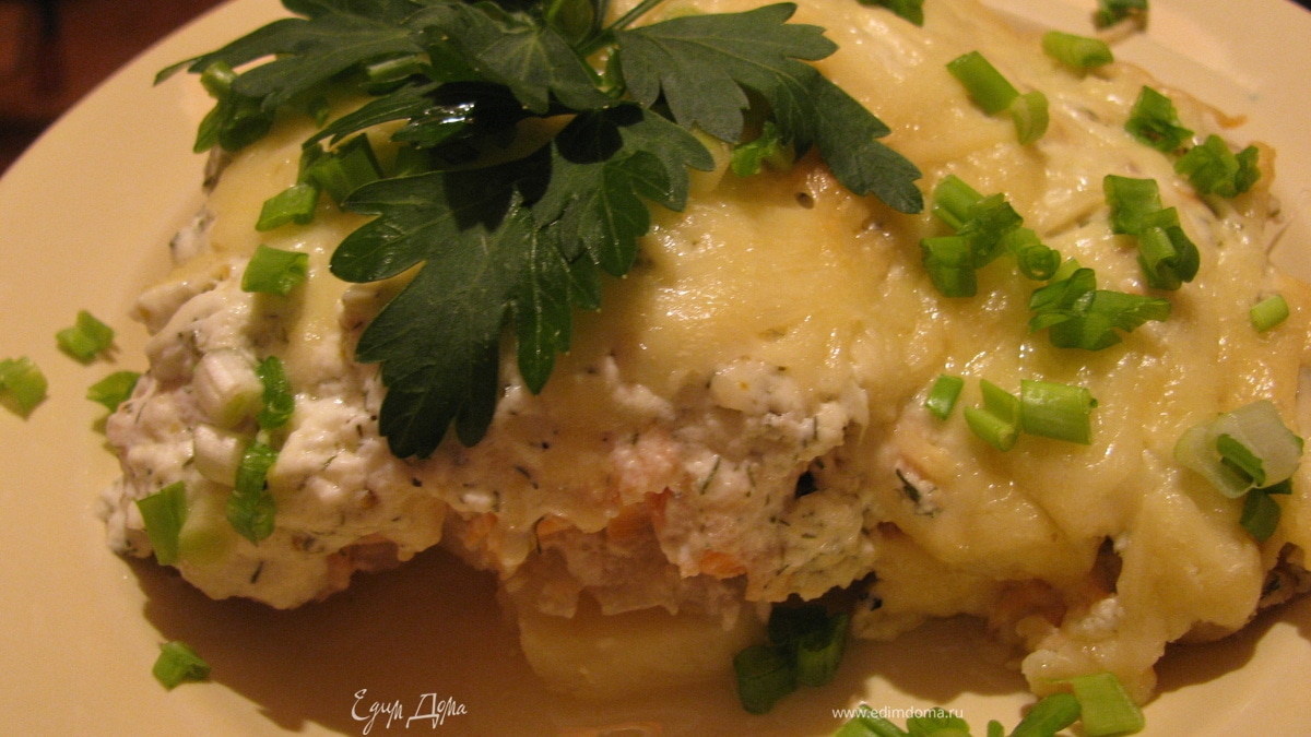 Ставим в хорошо разогретую духовку на30мин.Минут за 5 до готовности посыпаем тертым сыром и отправляем обратно в духовку подрумянится.