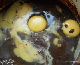 Вмешать яйца, предварительно их не взбивая.