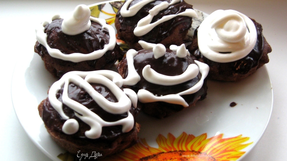 - Шаг 11.Тщательно взбиваем масло с сахаром, добавляем яйца и взбиваем до получения пышной массы. 2.Перемешиваем просеянную муку с какао и соединяем с остальной массой. 3.Кладем разрыхлитель или гашеную соду. 4.По желанию можно добавить орехи, кокосовую стружку и т.д. 5.Выкладываем в формочки и выпекаем в духовке при температуре 180 градусов 25-35 минут. 6.Пока кексы пекутся, готовим шоколад. Масло, сахар, молоко и какао кладем в кастрюльку и варим на медленном огне до однородности. Ставим остывать. 7.Вынимаем кексы, даем остыть и смазываем шоколадом. Приятного аппетита!:)