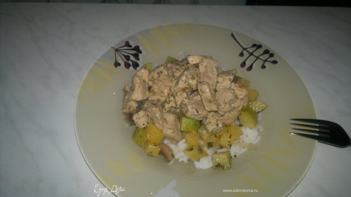 Рис арборио с гавайским чатни и свинина тушеная с травами
