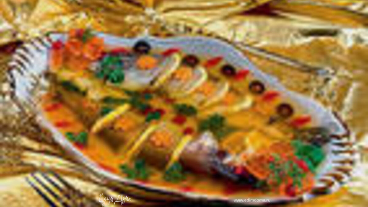 - Шаг 1Рыбу почистить, отрезать голову, хвост, плавники, разрезать на куски. Головы и хвосты положить в кастрюлю, добавить пару горошинок черного перца, лавровый лист, несколько морковок, лук. Залить водой, посолить и поставить варить на 30 минут, снимая время от времени пену. Головы и хвосты вынуть из бульона, опустить в него куски рыбы и варить их на медленном огне до готовности минут десять. Вынуть из бульона рыбу шумовкой, положить в форму (специальный лоток). Красиво выложить между кусками рыбы нарезанные кружки вареных яиц, звездочки вареной моркови, ломтики лимона. Процедить бульон и залить им рыбу. Дать застыть и остынуть, а затем поставить в холодильник. Подавать с хреном. Украсить зеленью, оливками.