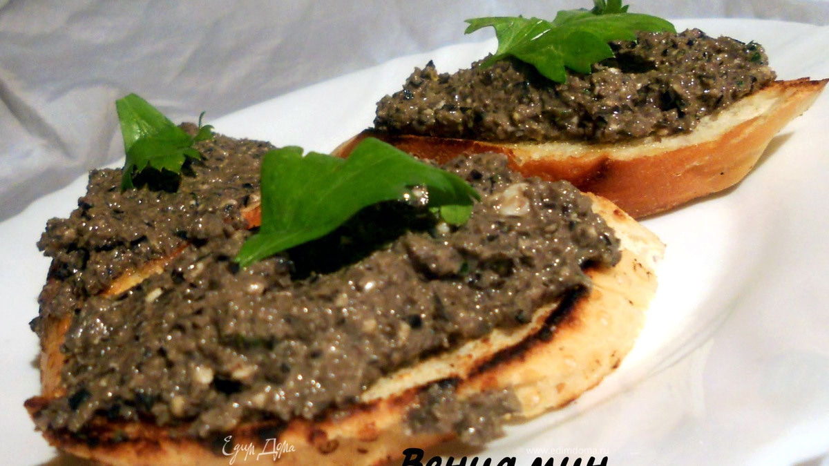 - Шаг 3Багет/чиабату подсушить на сухой сковороде до желаемого состояния. Слегка смазать оливковым маслом и по желанию натереть чесноком. Подавать с тапенадой. Паста смело хранится несколько дней в холодильнике, только я бы порекомендовал поверхность еще немного сбразнуть маслом, закрыть крышкой/пленкой.