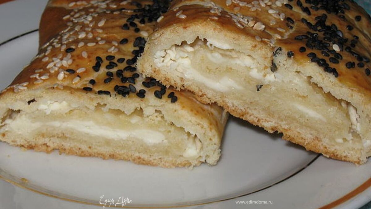 - Шаг 1Вымесить тесто из вышеперечисленных продуктов, положить в холодильник на час. Разминаю брынзу вилкой или тру на терке. Достаю тесто из холодильника делю на 3 части, каждую часть раскатываю не совсем тонко, выкладываю начинку на раскатанный лист, аккуратно заворачиваю в рулет приминая кончики, чтобы начинка не высыпалась. Сверху смазываю яйцом и посыпаю кунжутом. Выкладываю на застеленный пекарской бумагой протвень и выпекаю до зарумянивания при 180 градусах. Разрезаю на кусочки остывшим.