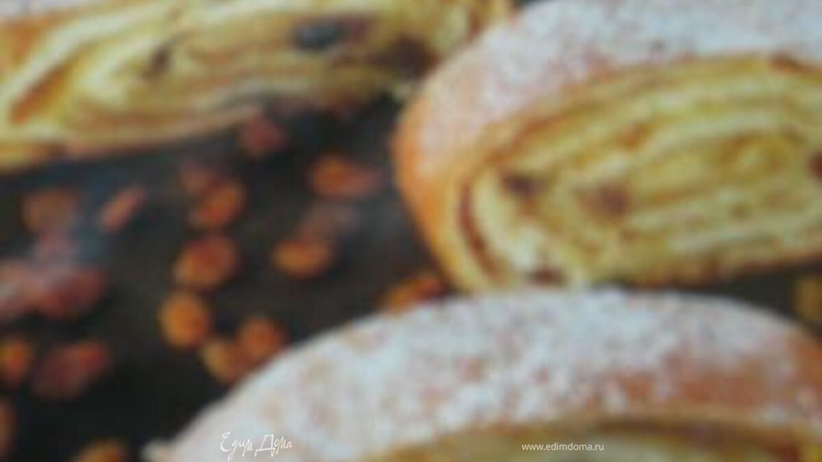 - Шаг 1Смешать просеянную муку с сахарным песком, солью и взбитыми яйцами. Замесить тесто, добавить разведенные в молоке дрожжи. Дать подойти в течение часа. Раскатать тесто скалкой в тончайший пласт на подпыленном мукой полотенце. Обрезать края. придав форму квадрата. Разложить по тесту кусочки сливочного масла, посыпать панировочными сухарями. Выложить порезанные тонкими ломтиками яблоки и изюм. Посыпать песком и корицей. Свернуть рулетом, защипить края, смазать яичным желтком. Посадить в нагретую до 210 градусов духовку на 40 минут.