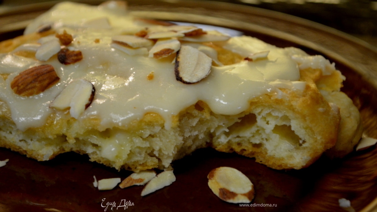 Выпекать примерно 1 час или пока верхняя корочка не станет хрустящей и золотистой.Охлаждать 30 мин.Покрыть глазурью из сахарной пудры.Посыпать миндалем! - Шаг 7