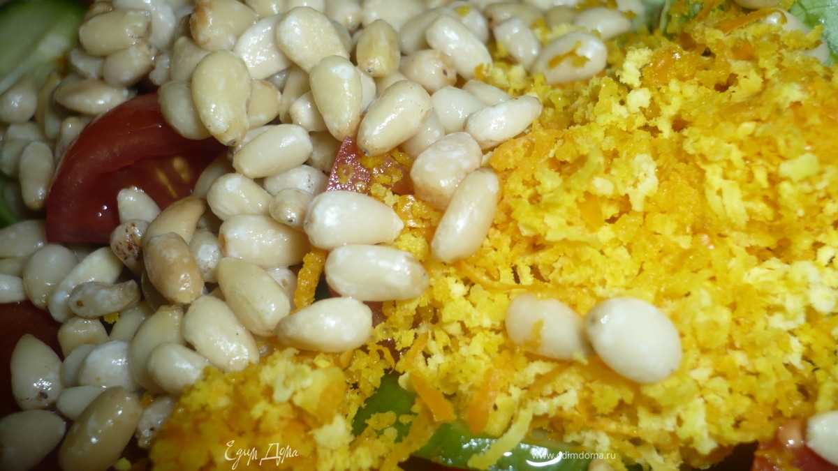 Салат действительно появился экспромтом, готовила обычный свежий салат, а думала о салате Юлии Высоцкой с семгой, апельсинами и оливками(НО дома не оказалось семги)и о салате Елены Широких с грейпфрутом (которого тоже не было). В результате получился интересный салатик...