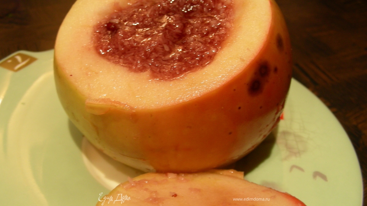 Запеченные яблоки с клюквенным джемом, кокосом и лимончелло