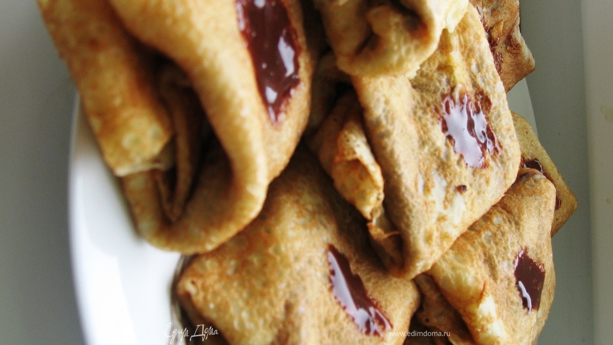 Блинчики начиняем и складываем по желанию- трубочкой, конвертиком, треугольником или просто пополам. Желательно подавать, так сказать, с пылу с жару.=)