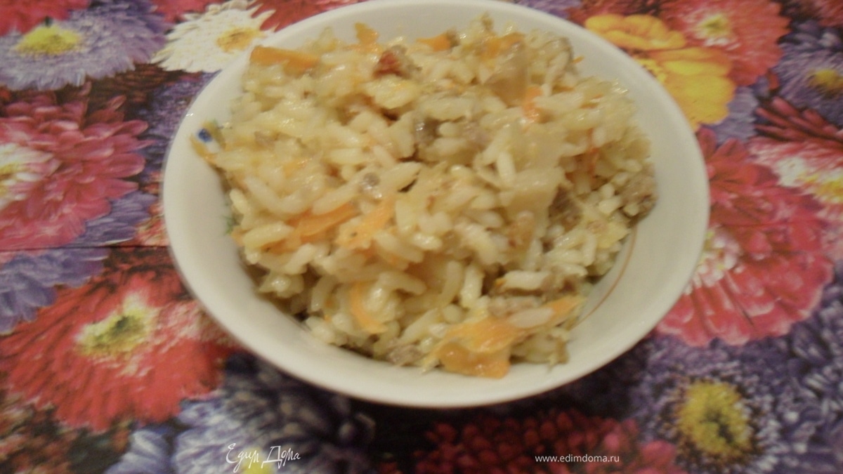- Шаг 1Нарезаем морковь и лук. Пожарить на растительном масле до золотистой корочки. Полученную поджарки складываем в кастрюлю. Нарезаем куриное филе. Жарим его на той же сковородке до готовности или почти готовности и золотистой корочки, подсолив.Кладём жареное филе в кастрюлю на овощи. Засыпаем в кастрюлю с овощами и жареной курицей 4 стакана риса, добавляем приправы, нарезанный чеснок, солим.Заливаем 4-мя стаканами воды(800 мл).Варим до готовности на малом огне 25-30 минут варки. Ближе к концу готовки перемешиваю содержимое кастрюли.