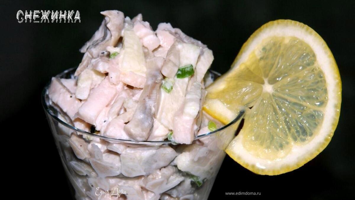 Безумный салат! В смысле безумства его вкуса, обалденный салат! Каждый ингредиент прост, но вносит свою нотку, в сочетании с ароматом лимончика и коньяка создает гармонию вкуса и аромата! Подать его можно как коктейль, будет очень эффектно и «в тему». ОЧЕНЬ-ОЧЕНЬ рекомендую!